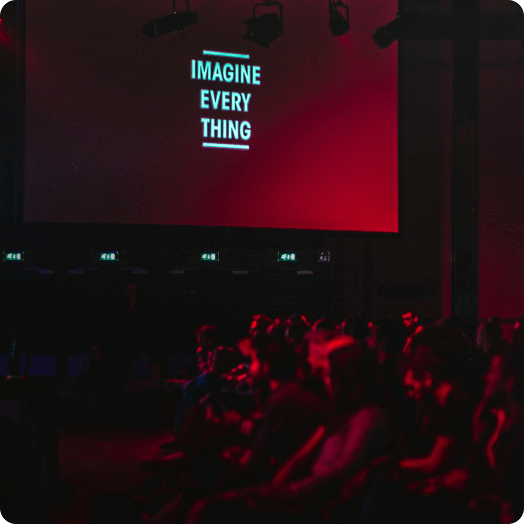 Współpracujemy ze sprawdzonymi firmami technicznymi z Łodzi. Projektory, ekrany LED, systemy konferencyjne, oświetlenie sceniczne. Dbamy też o stronę wizualną taką jak branding, identyfikatory dla gości czy materiały promocyjne.